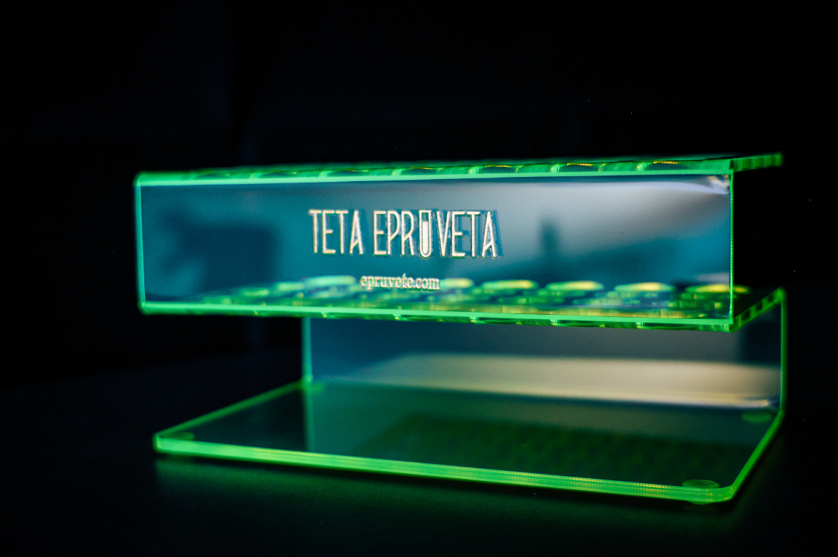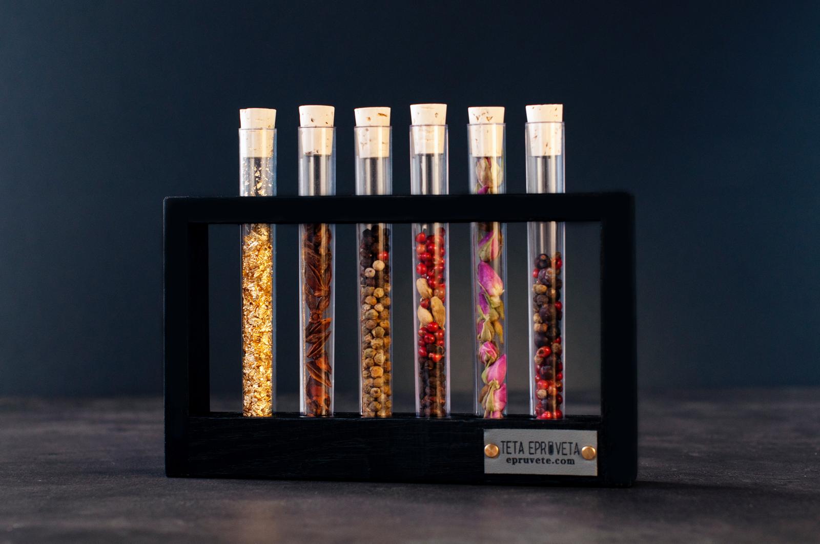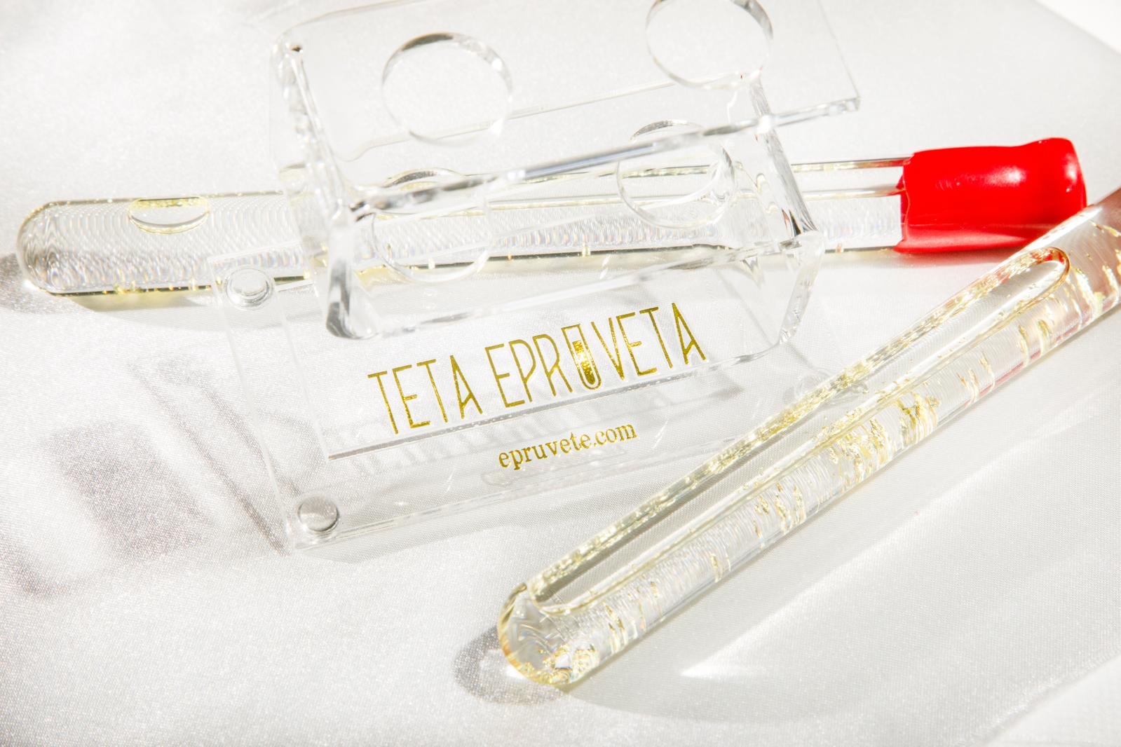 Teta Epruveta izrađuje unikatne epruvete punjene pažljivo biranim sadržajima – od domaćih rakija i likera (uz opciju 24-karatnog zlata), do mediteranskih začina, čajeva, wellness mirisnih soli, meda, ulja i slastica.