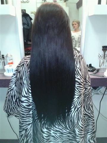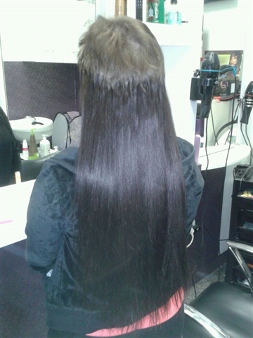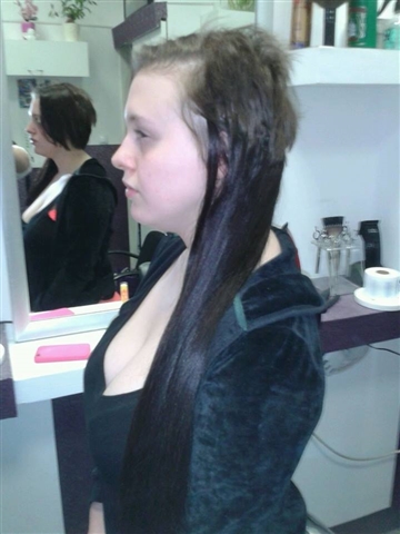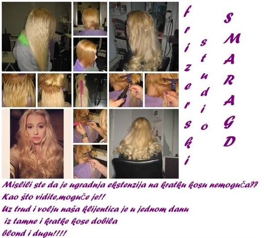 Na ovim slikama nalazi se osoba kojoj je ugrađeno 250 komada ekstenzija za kosu.Imala je izrazito kratku kosu,ali zahvaljujući iskustvu i znanju našeg osoblja,zabljesnula je u novom izdanju.Po završetku ugradnje ekstenzija,poslala nam je sliku sa svojim new lookom i napisala svoj komentar jednom riječju; predivno. Neprocjenjivo. Tu smo zbog Vas, dođite i Vi i prepustite se našem timu.