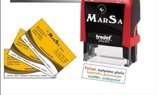 Osim spomenute ponude štambilja i žigova, u Marsi možete naručiti i graviranje na pločice za Vaš dom ili ured, a kako se Vaš kućni ljubimac ne bi izgubio imate mogućunost napraviti mu osobnu pločicu s imenom. Želite li ostaviti najbolji dojam prvi prvom sastanku osigurajte si izradu vizitka koje možete također sami osmisliti te provesti u izradu.